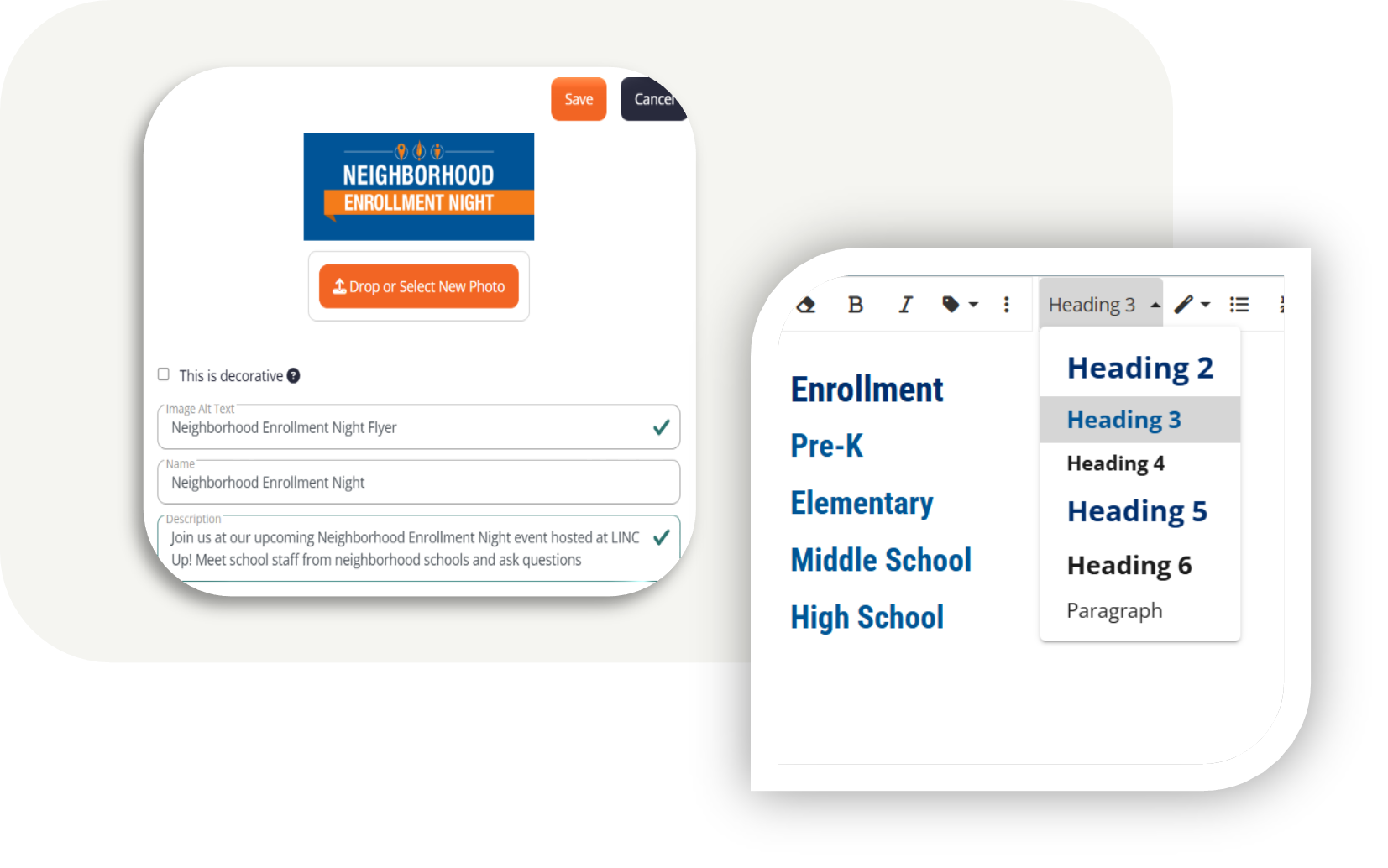 The Foxbright CMS fixes accessibility issues like color contrast, alt text, and formatting before content is ever published - saving your team time and preventing errors.